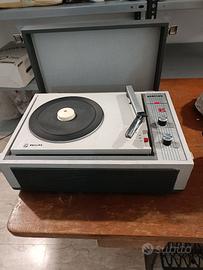 Splendido Giradischi per vinili marca PHILIPS KORTING Funziona in modo indipendente senza bisogno di altri componenti perché ha l’amplificatore più l’altoparlante incorporato. Funziona con vinili a 45, 33 e 78 giri, funzionante.
