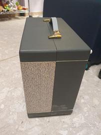 Sul piano superiore sono situati i comandi operativi, costituiti da un interruttore per la selezione della modalità di riproduzione stereo o mono e dai tre selettori del livello di volume, di tono e di bilanciamento. Il piatto e il braccio porta pick-up sono in plastica grigia, accanto al piatto si trova la leva per la selezione della velocità di riproduzione del disco a 16, 33, 45 o 78 giri