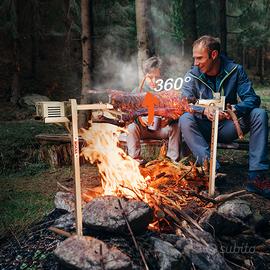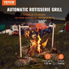 Altezza Regolabile a 8 Livelli: progettato con 8 fori posizionati su diverse altezze per una regolazione senza sforzo del girarrosto. Il kit girarrosto è stato realizzato per controllare la temperatura di cottura. Altezza regolabile tra 40,5-79 cm. Il treppiede aggiornato a 45 gradi garantisce una posizione stabile, anche sull'erba.