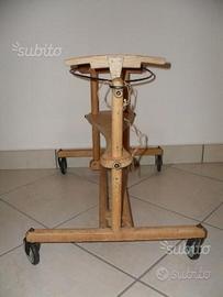 Vecchio girello in legno con marchio di fabbrica, anni 40/50, ruotine in legno con ancora tracce della pittura azzurra originaria, il telaio è pulito al naturale, oggetto vintage da collezione, come da foto, vendita fra privati, spese di spedizione escluse