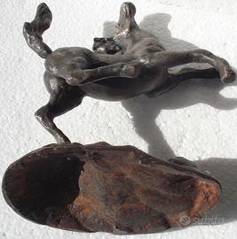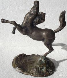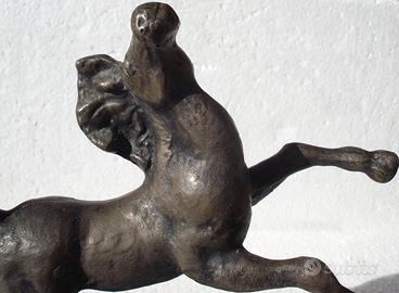 SCULTURA DI CAVALLO RAMPANTE MOLTO DI EPOCA IN BRONZO MASSICCIO FIRMATA DELL'ARTISTA.