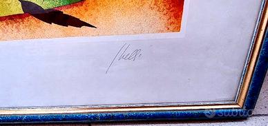 l'opera è intitolata "Colline felici" ed è originale, firmata, titolata e numerata 114/150 a lapis dall'Autore,