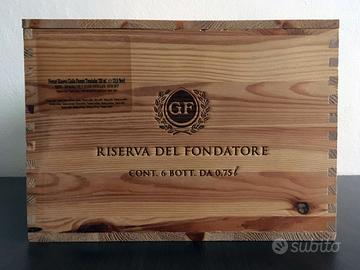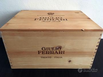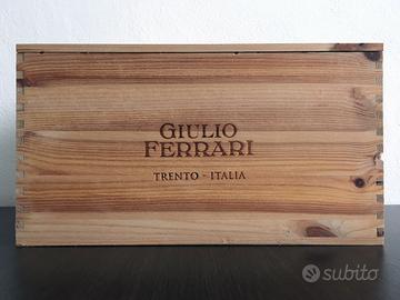 Cassa in legno completa da sei bottiglie in condizioni perfette di Giulio Ferrari Riserva del Fondatore 2005 Ferrari Trento. Bottiglie non incluse.