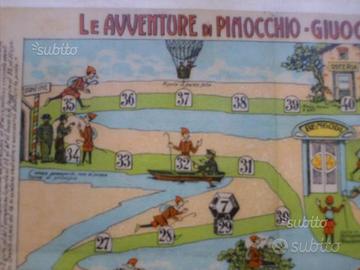 Le spiegazioni del giuoco sono ai lati e sotto i percorsi . In particolare abbiamo sul pannello in foto ( da un lato Pinocchio ) , dall'altro lato ( corse di cavalli ) .