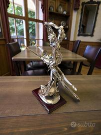 • Materiale e Finitura: La scultura sembra appartenere alla linea con finitura metallica/argentata e dettagli dorati. Armani utilizzava spesso la "porcellana a freddo" o resine composte di alta qualità che permettono dettagli molto minuziosi.