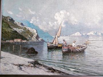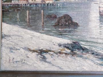 Stupendo dipinto di Giuseppe Carelli (1858 - 1921), artista ottocentesco di scuola napoletana, noto rappresentante di una famiglia di artisti partenopei. Trattasi di un olio su tela di 32*53 cm in più che buone condizioni rappresentante Capri vista da Sorrento. Firmato in basso a sinistra, in cornice antica (con qualche difetto vista l'età). Alla lampada di wood la firma appare coeva e non ci sono stuccature o ritocchi degni di nota. Rintelo. Le foto non rendono merito alla grandissima qualità dell'opera. Il prezzo è trattabile però parliamone direttamente (controllo raramente la posta), contattatemi su wazz up Paolo 3474904042