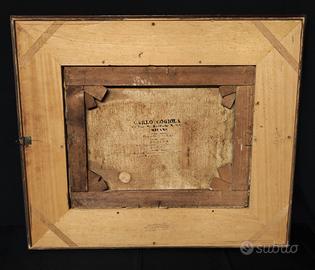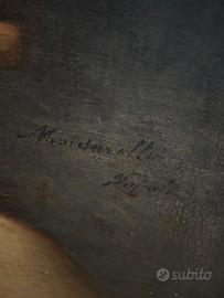 Ritratto femminile realizzato ad olio su tela, firmato Maldarelli Napoli, attribuibile al pittore Giuseppe Mardarelli (Napoli, 11 settembre 1885 – Napoli, 16 aprile 1958). L’opera raffigura una giovane donna colta di profilo, immersa in un’atmosfera intima e raccolta. La luce radente modella delicatamente il volto e valorizza la morbidezza dei capelli biondi, resi con grande sensibilità pittorica e attenzione al dettaglio. 🏛️ Sul retro è presente timbro commerciale Carlo Cogiola Milano, noto produttore di tele per artisti attivo tra fine ‘800 e primi ‘900. 📏 Dimensioni • Senza cornice: 44 x 32 cm • Con cornice non coeva : 57 x 68 cm ✔️ Buone condizioni generali. La superficie pittorica presenta una patina omogenea coerente con l’età. Presente una piccola riparazione visibile sul retro. Cornice non coeva in omaggio. 🧑🎨 Giuseppe Maldarelli (Napoli, 11 settembre 1885 – Napoli, 16 aprile 1958) è stato un disegnatore e pittore italiano. Da giovane si trasferì da Napoli a Milano ove studiò all'Accademia di Brera, qui si diplomò, e presso la medesima accademia ottenne il premio “Bozzi Camini”. Nel 1912 espose in una collettiva alla "Galleria Cova" di Milano, ottenendo degli elogi della critica per un dipinto raffigurante "San Carlo Borromeo che si reca a visitare gli appestati". Espose alla Biennale d'arte di Venezia e ad altre importanti manifestazioni d'arte a carattere nazionale. Rientrato nella sua città natale, morì il 16 aprile del 1958. Il suo stile riprende la pittura napoletana della seconda metà del XIX sec., in un primo tempo rifacendosi a Domenico Morelli poi ad Antonio Mancini. Si dedicò principalmente al ritratto, alla pittura di genere, ai paesaggi (fra i quali sono celebri quelli della città di Venezia). ✅ Spedizione sicura con imballaggio antiurto ✅ Per ulteriori informazioni non esitate a contattarmi Mercatino dell'antiquariato Tiriciclo , Salerno