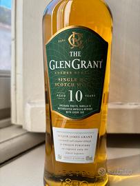Glen Grant 10 Years Old Single Malt Scotch Whisky. prodotto a Rothes, nello Speyside, in Scozia. Bottiglia cl. 70. - Con Astuccio Gradazione: 40% Vol. Invecchiamento: 10 anni in botti di rovere americano ex-bourbon Condizioni perfette Consegna gratuita a Milano città