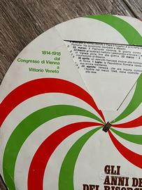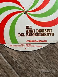 Gli anni decisivi del Risorgimento, ruota della storia in stile disco orario, gadget vintage distribuito dal Corriere dei Ragazzi, dedicato agli anni decisivi del Risorgimento italiano.