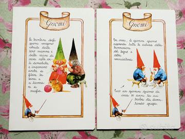 * RISPONDO SOLO ad utenti Verificati e con ANNUNCI ATTIVI.* GNOMI VINTAGE 1980 3 Quaderni A5 4 MAXI Quaderni A4 NO IMITAZIONI o RIEDIZIONI CONTEMPORANEE! NO VINTAGE USATO! Autentico VINTAGE da collezione anni Ottanta: Bellissimo LOTTO di SETTE QUADERNI composto da 3 QUADERNI A5 e da 4 MAXI QUADERNI A4 (QUADERNONI) della serie ‘A SCUOLA CON GLI GNOMI’, a cui si ispirò, qualche anno dopo, il cartone animato DAVID GNOMO. VINTAGE NUOVO DA NEGOZIO. QUADERNI appena tolti dalla propria RISMA in cellophane, quindi mai toccati da nessuno nei loro OLTRE 35 ANNI DI VITA! - 3 QUADERNI ‘piccoli’ Ben lontani dalla ‘cartoleria’ attuale, dove le copertine dei quaderni per bambini sono fotografie (ritoccate) di umani, influencers o altri personaggi televisivi, nella compulsiva e malata necessità di ‘apparire’… negli anni ’80 esistevano veri autori, disegnatori, che non mettevano in copertina le loro faccine, ma CREAVANO PERSONAGGI educativi. Uno di questi, l’olandese Rien Poortvliet si guadagnò fama internazionale grazie alla serie di libri sulla vita degli gnomi. Il cartone animato David gnomo, tratto dai suoi libri, fu un successo mondiale. Queste copertine, tratte dai suoi libri per UNIEBOEK, edite da CARTORAMA per il mercato italiano, illustrano e spiegano ai più piccoli, con fantasia, la VITA DEGLI GNOMI. Pagine: a quadretti PICCOLI, senza margine. Formato: A5: 20,5 x 14,5 cm. Fogli: 29 PAGINE: MEDIO SPESSORE. ♥ 4 MAXI QUADERNI RARI QUADERNONI in formato A4 con pagine a QUADRETTI e COPERTINE simili o identiche a quelle dei quaderni piccoli. Pagine: a quadretti GRANDI, senza margine. Formato: A4: 31 x 21 cm. Fogli: 18: SOTTILI. ♥ CONDIZIONI Oggetti nuovI DA NEGOZIO e DA RISMA, completI, perfettamente pulitI. *NON TRATTO e NON HO MAI TRATTATO USATO.* I quaderni NON presentano alcun difetto, ma mostrano solo la QUALITÁ della CARTOLERIA VINTAGE PRIMI ANNI ’80. © 1976 UNIEBOEK HOLLAND Originale ‘GNOMI’ CARTORAMA ITALY - Spedisco con POSTE DELIVERY STANDARD.