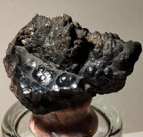 ✨ Caratteristiche: superficie botrioidale, colore nero lucido, contrasti cromatici e materici evidenti sulla matrice naturale.