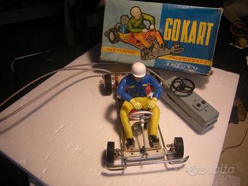 GoKart elettrico anni 70 teleguidato, funzionante con 2 batterie 'torce' 1,5 V Scatola originale un pò danneggiata, articolo x collezionisti