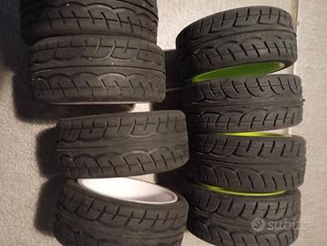 8 gomme asfalto per auto rc diametro 64 mm attacco esagonale da 12 mm , battistrada pari al nuovo,sono già incollate , le ho montate un giorno su un Monster truck ,ma essendo di assetto troppo morbido si ribaldava e le smontate di nuovo .Affare !