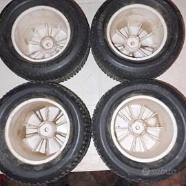 cerchi e gomme kyosho inferno st o adatte per mad force madforce originali kyosho , le gomme sono consumate e datate non si garantisce che una volta montate reggano i cerchi sono integri 100%