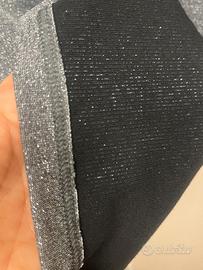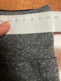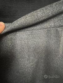 Gonna tubino Tezenis in tessuto scintillante color argento brillantinato. Materiale sintetico che non si stropiccia, tubino con elastico in vita, dietro l'elastico è nero e in 2 punti si è un po' rovinato con l'appendino (vedi ultima foto) però non ha perso elasticità e resta aderente. È una taglia S, riporto per sicurezza le misure: vita 34,5 cm da doppiare, fianchi 45 cm da doppiare, altezza dalla vita al fondo 66,5 cm quindi dipende dalla vostra altezza ma più o meno è altezza ginocchio. Possibilità di consegna a mano zona centro Milano oppure sera o weekend in piazzale Martini, zona sud di Milano.
