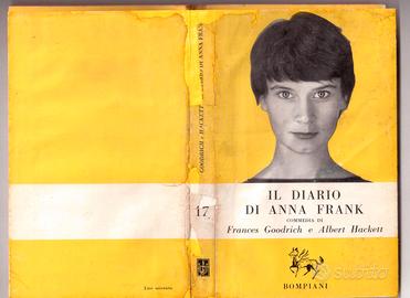 DA COLLEZIONE === Frances Goodrich - Albert Hackett, Il diario di Anna Frank [The diary of Anne Frank], commedia in 2 tempi e 10 quadri tratta dal libro omonimo, Milano, Bompiani [Tipografia A. Ronda, Milano], 14 aprile 1958, 1a edizione, pp. 185, illustrato con 8 tavole fuori testo [tra le pp. 8 e 9], cm 18, collezione: Pegaso teatrale, 17, traduzione di Laura Del Bono; copertina morbida bicolore (nero, giallo), sovraccoperta bicolore (nero, giallo), lieve intervento integrativo per mancanza sul dorso (vedi immagine), interno perfetto, nuovo, prezzo occasione per collezionista testi teatrali.