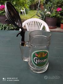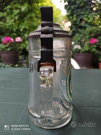 Antico boccale caraffa da birra in vetro con coperchio