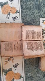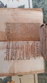 Tre volumi rilegati in pergamena rigida, conservati in discrete condizioni con dorso brunito e copertine esterne sbiadite ma integre, tipiche di edizioni veneziane del XVII-XVIII secolo. Ogni volume presenta un frontespizio inciso con fregio ornamentale centrale (disegno floreale o simbolico entro cornice barocca) e stampa gotica o tonda veneta in nero, con datazione implicita intorno al 1680-1750. Le informazioni date sono presumibili dai testi, ma non sono state confermate da un esperto in materia. Questi volumi sono stati ritrovati nella libreria di mio papà. Disponibilità per la visione.