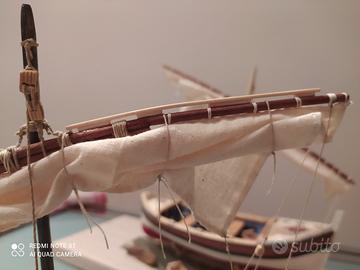 Vendesi modelli in scala gozzo ligure realizzati interamente a mano. Si precisa che i modelli fotografati sono ancora da terminare, mancano alcuni particolari. Come : remi, lampara, rete ed altri accessori. Prezzi da concordare in base all'allestimento del modello, partendo da un prezzo base di 120 euro per il modello senza vela e 160 per quello con vela latina. Base, sabbia, conchiglie, pietre e cassette del pesce comprese nel prezzo. Si realizzano anche in altri colori. Per informazioni contattare il riferimento dell'annuncio.