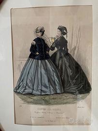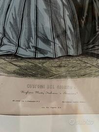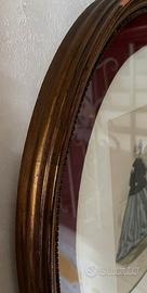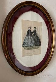 Grafica, quadro con rivista moda femminile 1800 Bel quadro pubblicitario con pubblicità di rivista di moda femminile del secolo XIX, ovale, cornice art nouveau originale con vetro e passepartout.