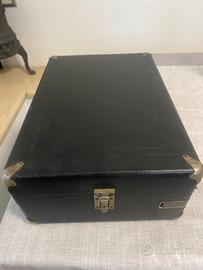 Antico grammofono a valigia Con movimento meccanico E carica a manovella . Perfettamente funzionante Disco 78 giri in regalo