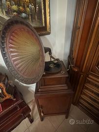 Questo è un grammofono, un dispositivo storico per la riproduzione meccanica del suono.