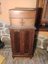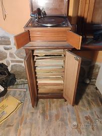 Grammofono originale pathe' ben conservato con testa lettore alternativa e mobile portadischi originale.