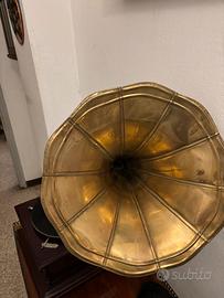 Vendo grammofono a tromba la voce del padrone , meccanismo originale inglese funzionante