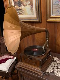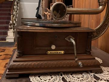 Grammofono Pathephone N. 8 originale primi 900. Ben conservato. Misure base cm 39 x 39. Tromba in metallo color ottone. Ritiro a mano.