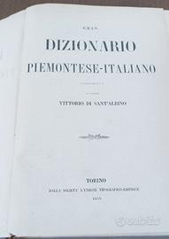 prima edizione di questo importante dizionario ricco di frasi e detti popolari e traduzioni di termini dialettali,.Autore Vittorio Sant’Albino edito dalla Società L’unione tipografico-editrice, Torino 1859 Legatura In Mezza pelle con titolo e fregi in oro al dorso. in buone condizioni 450 euro