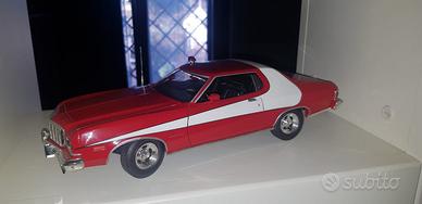 Modello Ford Gran Torino, autovettura Made in Usa prodotta tra il 1968 e il 1976 per il mercato Nord-Americano: questa è la versione sportiva datata 1972 presente nel telefilm di successo del 1976 " Starsky & Hutch " ossia la Mitica Gran Torino Rossa (ZEBRA 3) in scala 1:18 (cm 31-32 circa). SENZA SCATOLA.