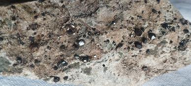 Bellissima cristallizzazione di Granato almandino (cristalli di alcuni mm) su matrice rocciosa metamorfica con tormaline.