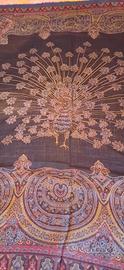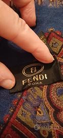 Elegante grande foulard Fendi con un motivo centrale di pavone e dettagli paisley.
