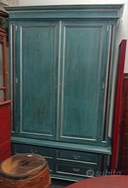 GRANDE ARMADIO ANTICO LACCATO DIPINTO SHABBY CHIC