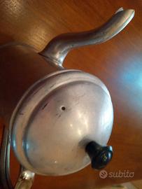la caffettiera è in ottime condizioni data l'età - sotto non più di tanto percepibile in foto ma dal vero si vede bene l'anno e non ancora lucidata, posso farlo - altezza 31 da manico a beccuccio 30