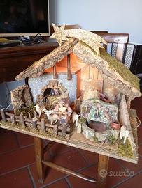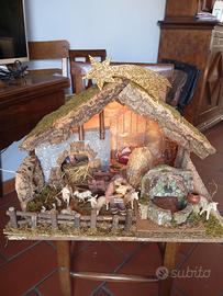 Grande capanna presepe artigianale, con statuine e luce, lunghezza cm 97, profondità cm 76, altezza cm 78, ritiro milano zona san siro -no spedizione