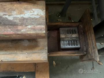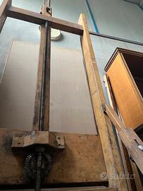 Cavalletto da pittore di grandi dimensioni. Solo ritiro. In legno. Con rotelle per spostamento. Con due cassetti laterali portapennelli/oggetti. Manovella per regolare l altezza per la tela. Come da foto.