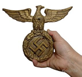 GRANDISSIMA INSEGNA IN FERRO AQUILA & SVASTICA , GERMANIA TERZO REICH , PROBABILMENTE UN INSEGNA DELL'ARMA WEHRMACHT IN QUEL PERIODO ERA UN OGGETTO DECORATIVO NELL' OFFICIO DI UN SUPERIORE MILITARE .