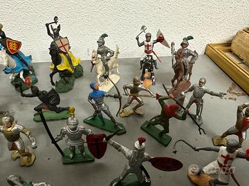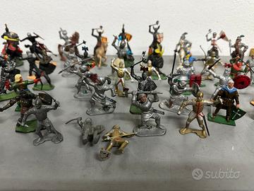 Grande lotto composto da 40 soldati appiedati e 10 cavalli (alcuni con rotelle nella parte inferiore), la maggior parte interi e alcuni con piccole mancanze/rotture