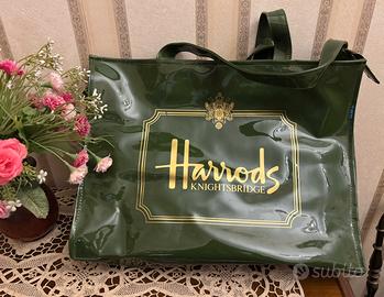 Borsa a due manici shopper Harrod’s plastificata con chiusura a zip;