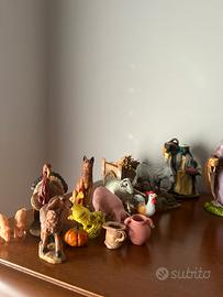 Lotto presepe composto da: - Madonna, San Giuseppe , bue e asinello antichi, - Angelo napoletano con vestiti di stoffa, - re Magi pastori napoletani (come si evince da una foto uno dei re Magi ha la base rotta e risistemata alla buona), - pastore moro napoletano con carretto e asino, - animali vari, - lampioni