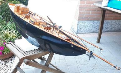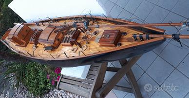 Bel modello di goletta - nave - barca a vela - veliero di grandi dimensioni (lunghezza del solo scafo, senza bompresso, di cm. 135 ca.) e molto pesante (chiglia appesantita), realizzato artigianalmente negli anni '70 ca., proposto esattamente come da foto allegate; da prevedere piccolo restauro