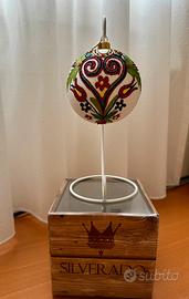 Grande Palla di Natale in vetro dipinta a mano della ditta polacca Silderado. Perfetta con la sua scatola originale