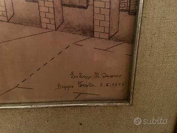 Grande quadro dipinto duomo saluzzo vintage