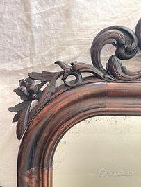 Vendo superba specchiera di metà 1800, in noce, riccamente scolpita a mano in un legno di noce di grande effetto.