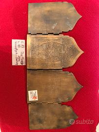 Condizioni: molto buone. Smalti ben conservati, rilievi nitidi, patina antica uniforme. Nessuna rottura o mancanza strutturale.