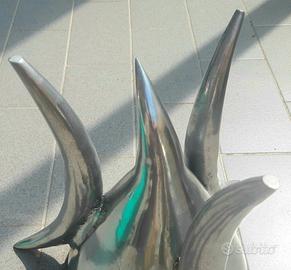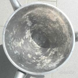 Grande vaso in alluminio di design utilizzabile anche come braciere, con 4 piedi a forma di corni.