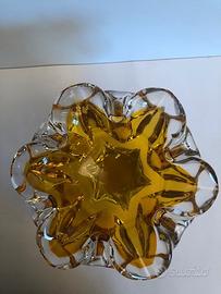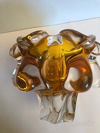 Vaso Aureliano TOSO Murano a forma di Conchiglia (Tridacna) vetro sommerso nei colori cristallo ed ambra.
