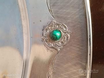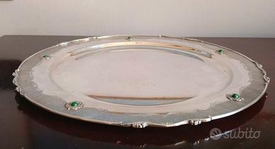 Un magnifico vassoio di belle dimensioni, in argento 800 del prestigioso marchio F.lli Calderoni, realizzato con grande maestria in argento, pietre dure a sfera e finitura con diverse lucidature realizzate a mano.