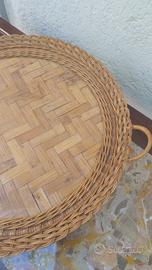Grande vassoio piatto in vimini bambù vintage